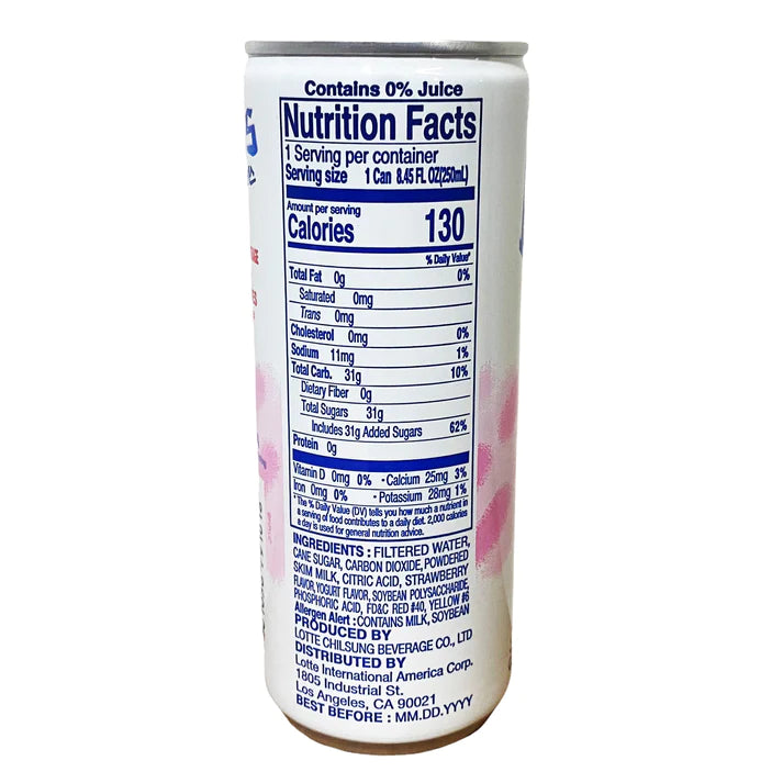 Milkis is a soft drink produced by Lotte Chilsung, a South Korean beverage company. It combines many of the common elements of traditional carbonated beverages such as sugar, and carbonated water with milk to create a creamy taste. This version is there strawberry flavor. Lotte Milkis Drink Can Peach Flavor come pick some up today.